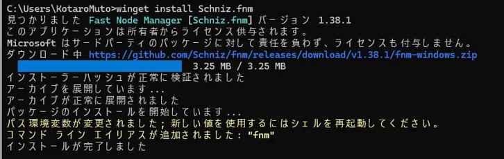 windows用のパッケージ管理ツール「winget」を使用したfnmのインストール手順