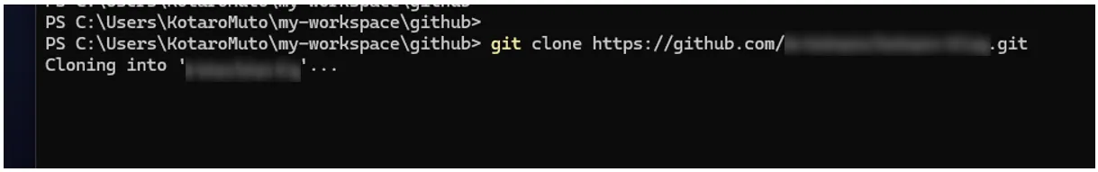 Username for 'https://github.com/YOUR_ORGANIZATION/YOUR_REPOSITORY.git': `(ユーザー名)`