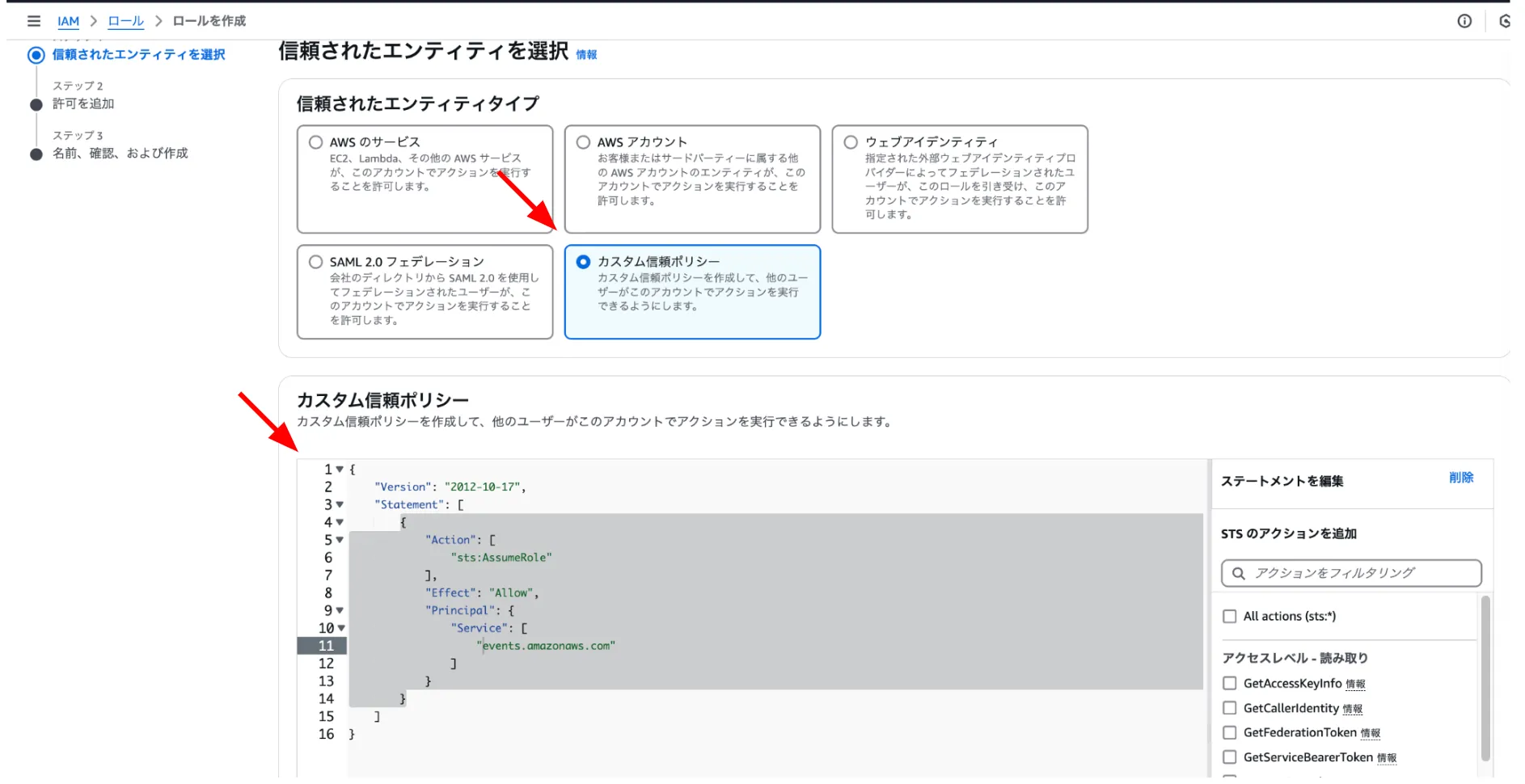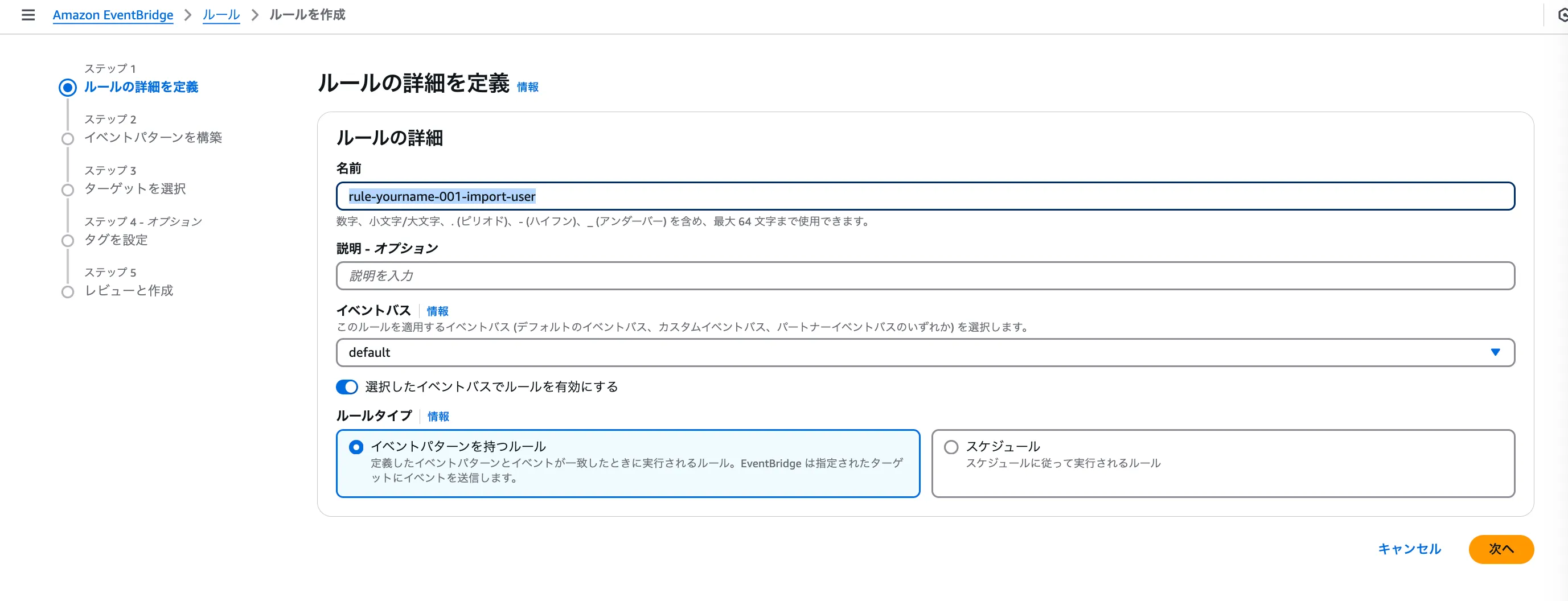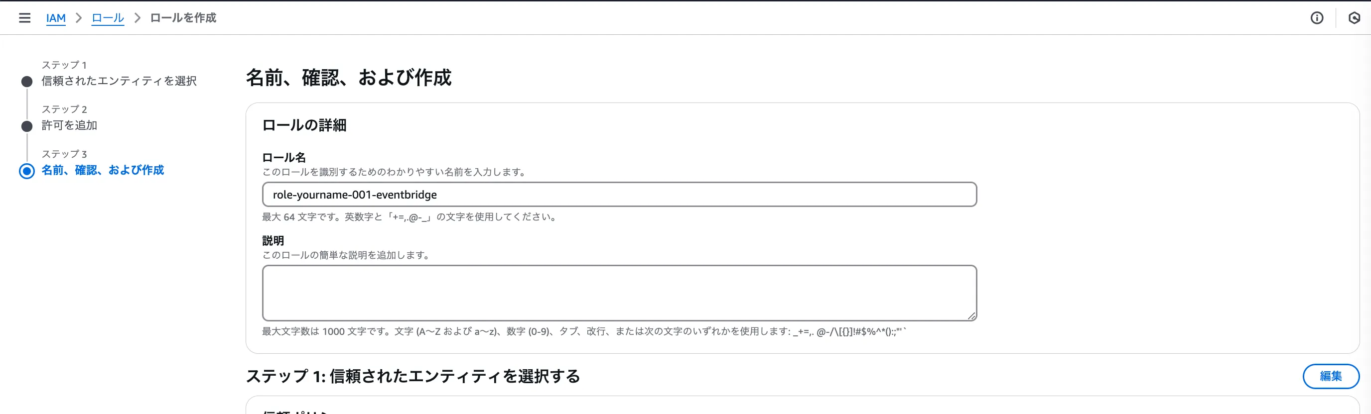 ロール名: role-[自分の名前]-[番号]-eventbridge