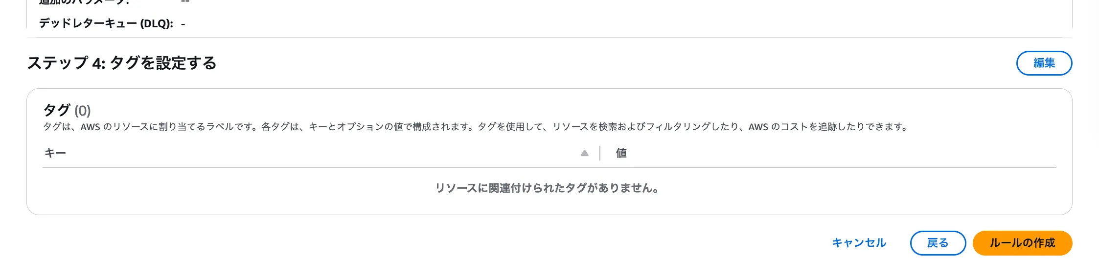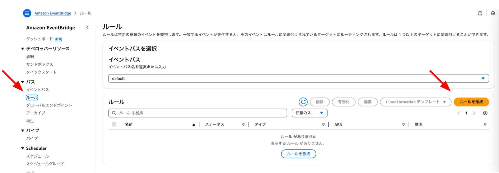「ルールを作成」->「作成」を繰り返し、同様にして下記EventBridgeを作成する