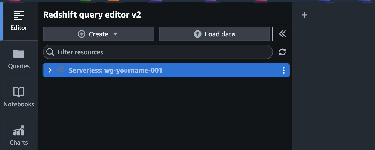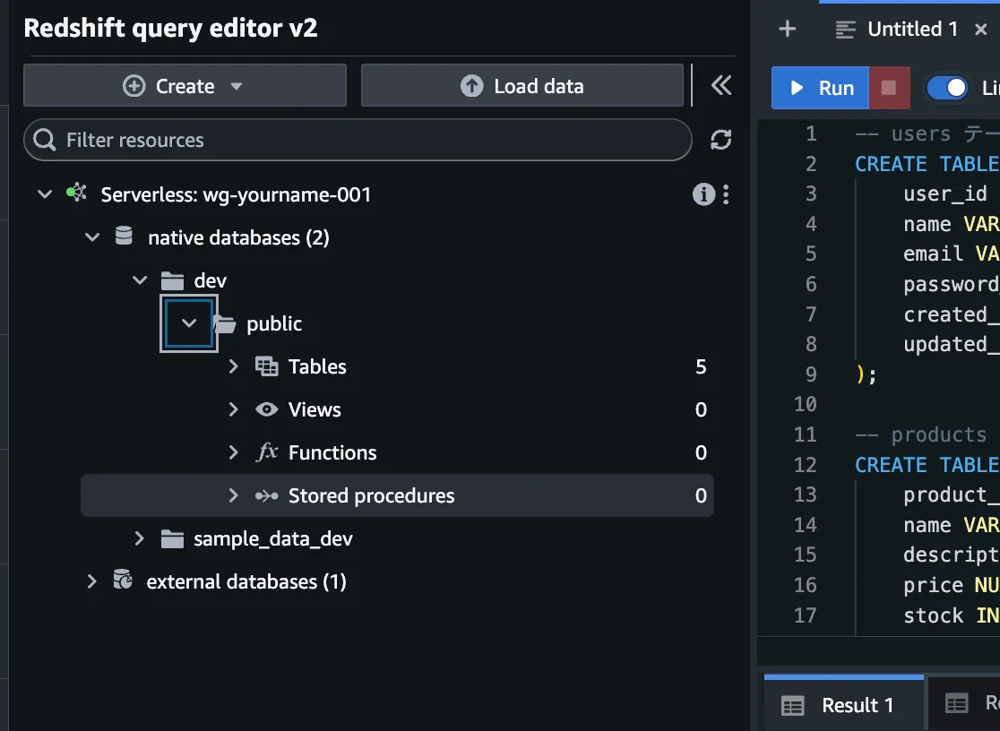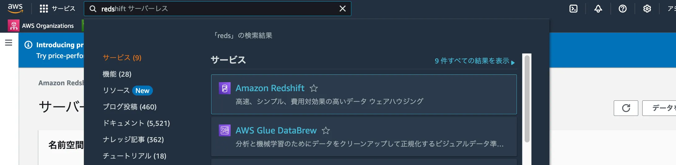 一覧よりRedshiftクリック