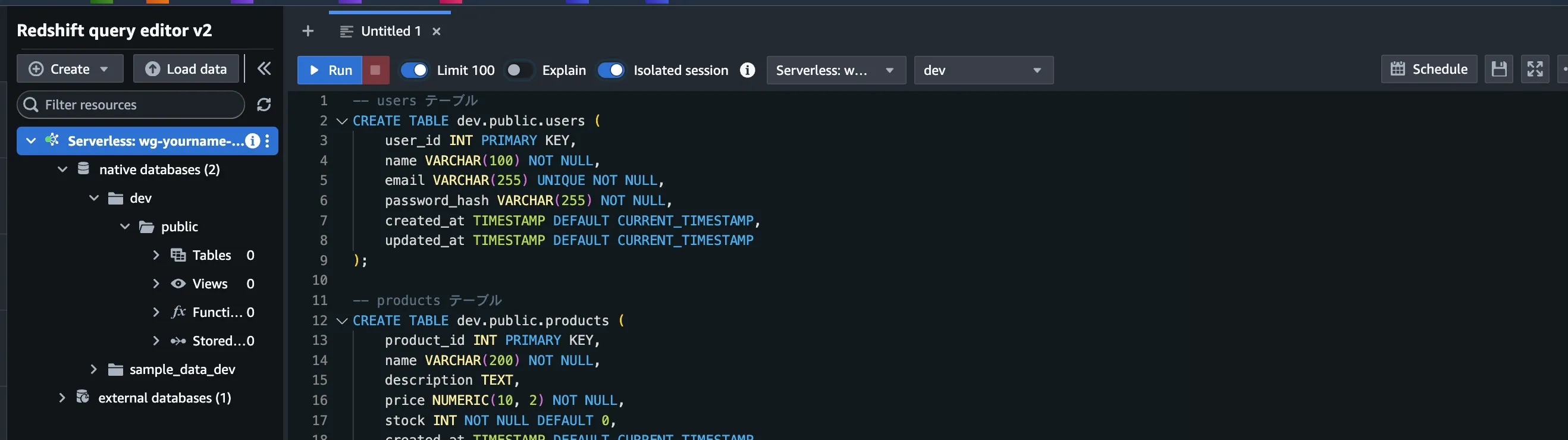 CREATE TABLE dev.public.products (