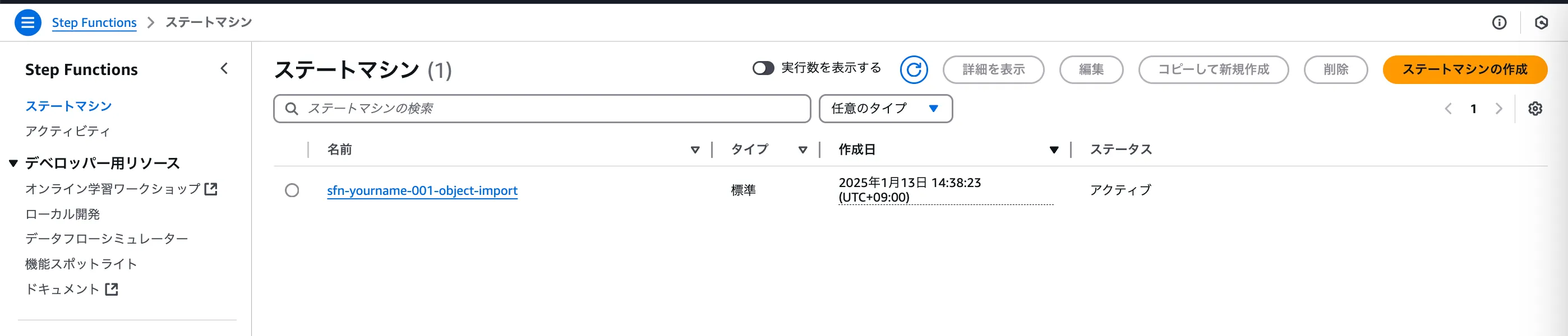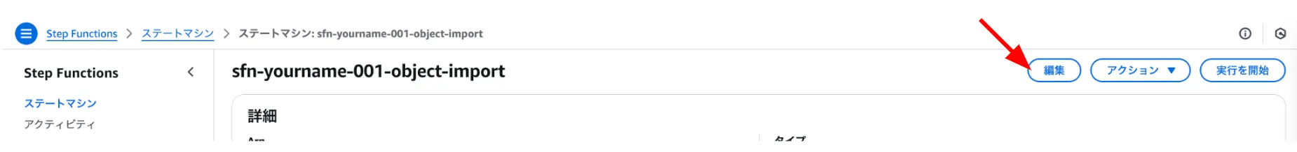 自分のStepFunctionsをクリック