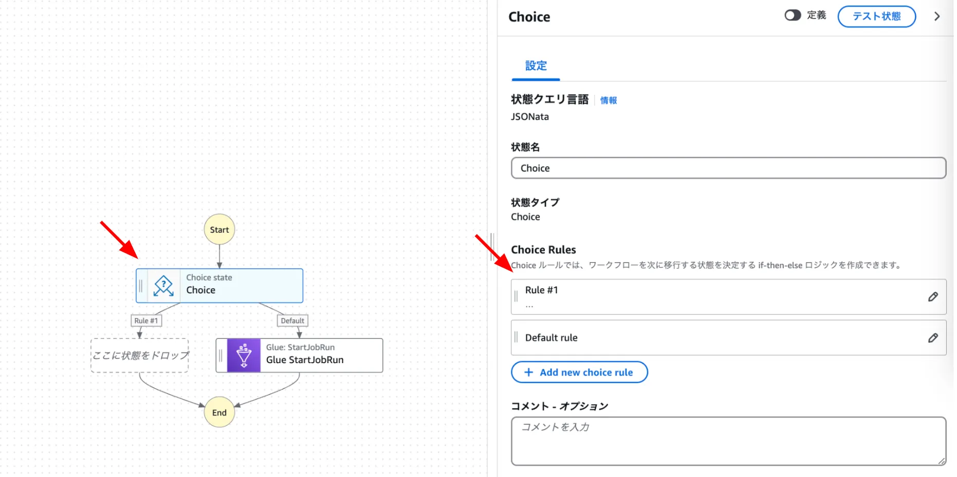 Choiceステートを選択してドラッグ&ドロップ