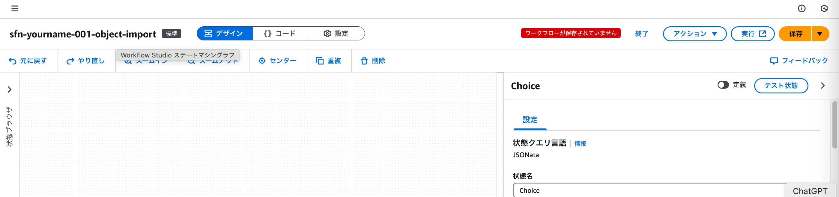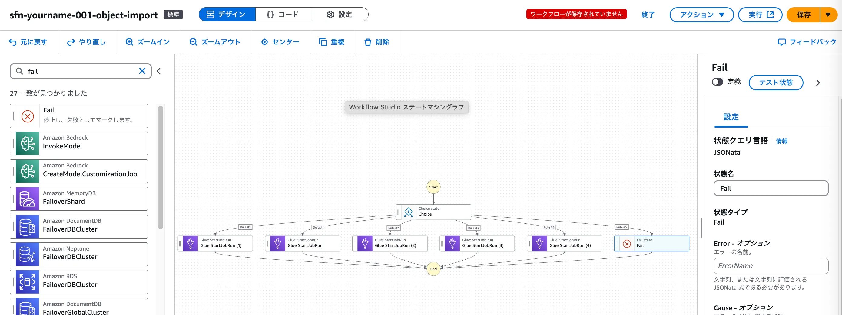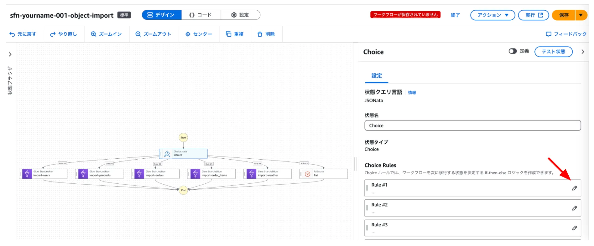 トリガー起動されたStepFunctionsのワークフローを編集する。