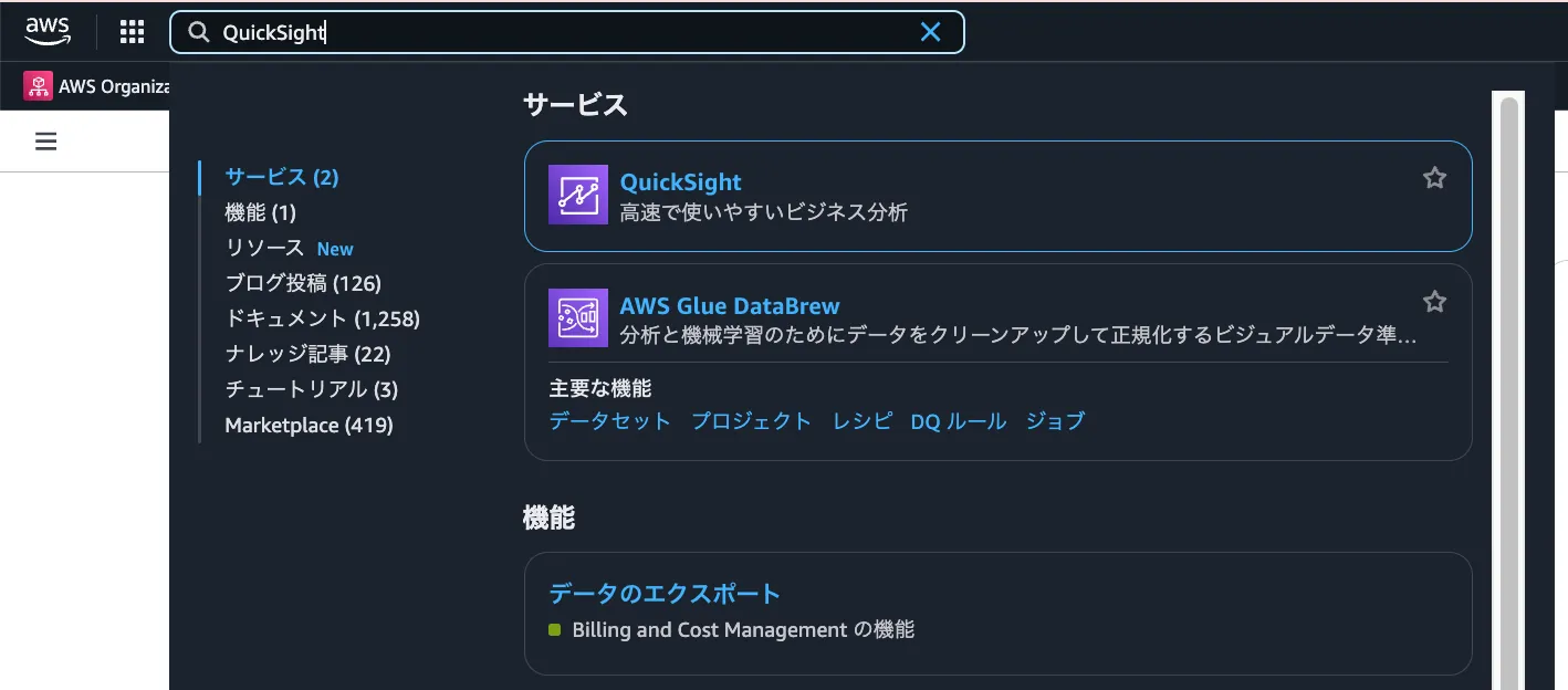 QuickSight アカウント作成