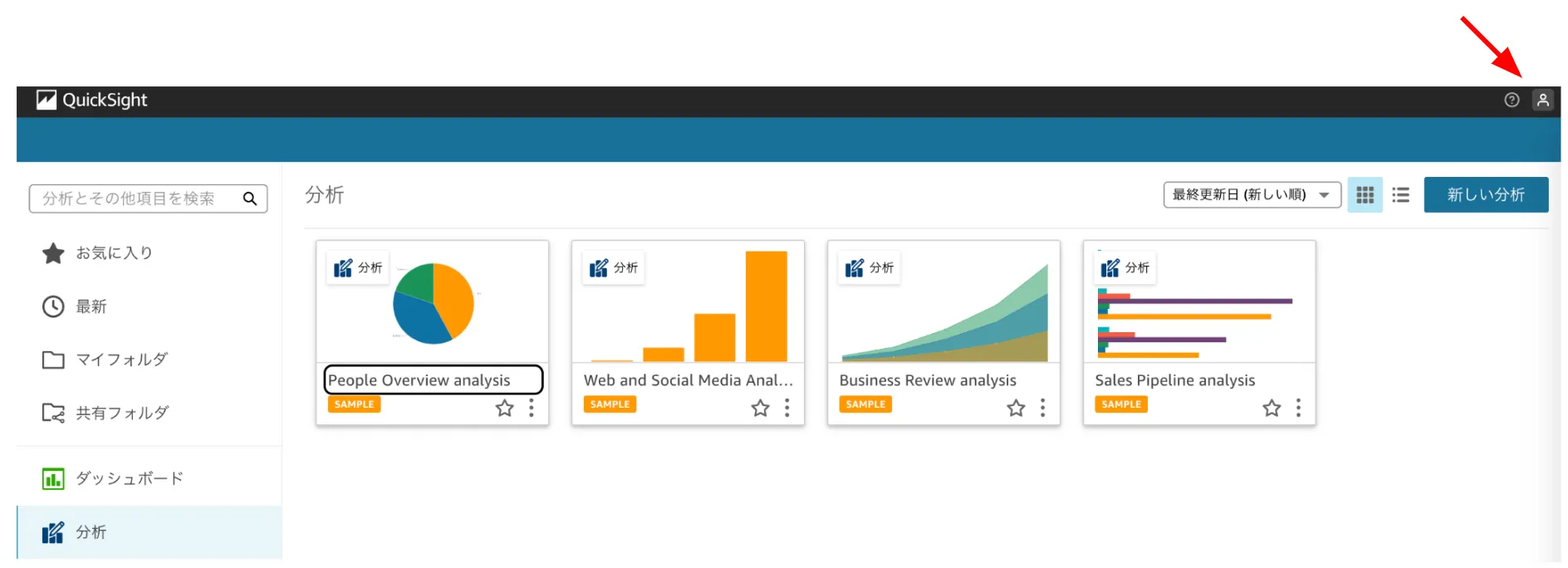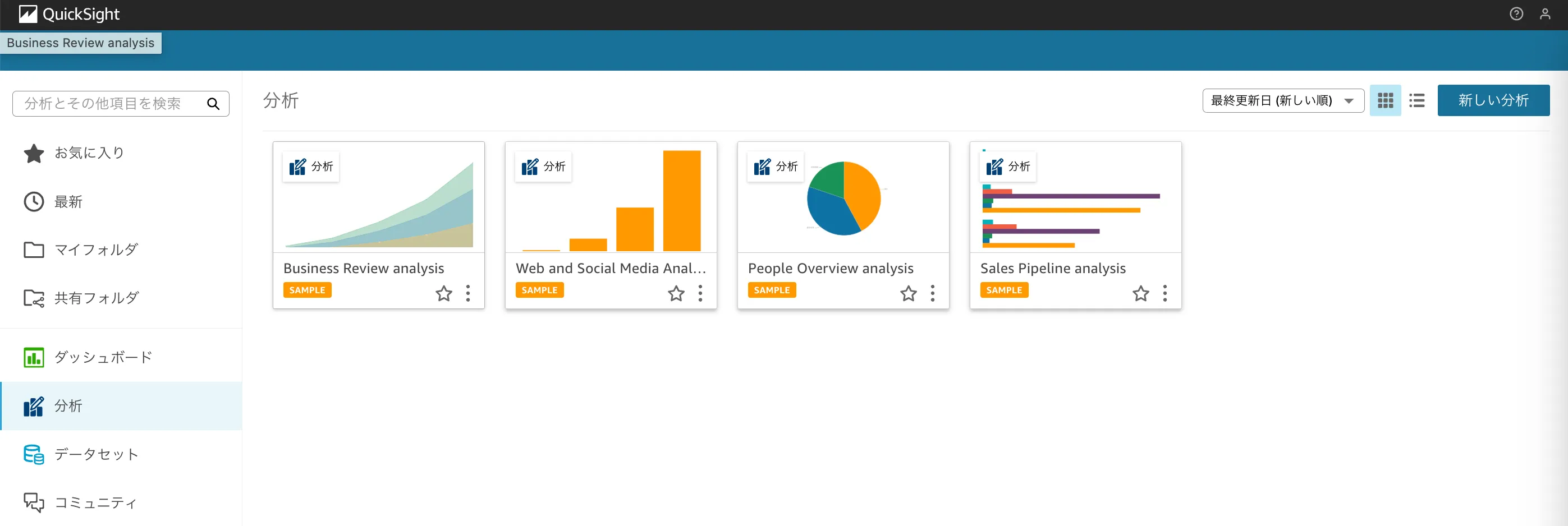 QuickSight トップページ