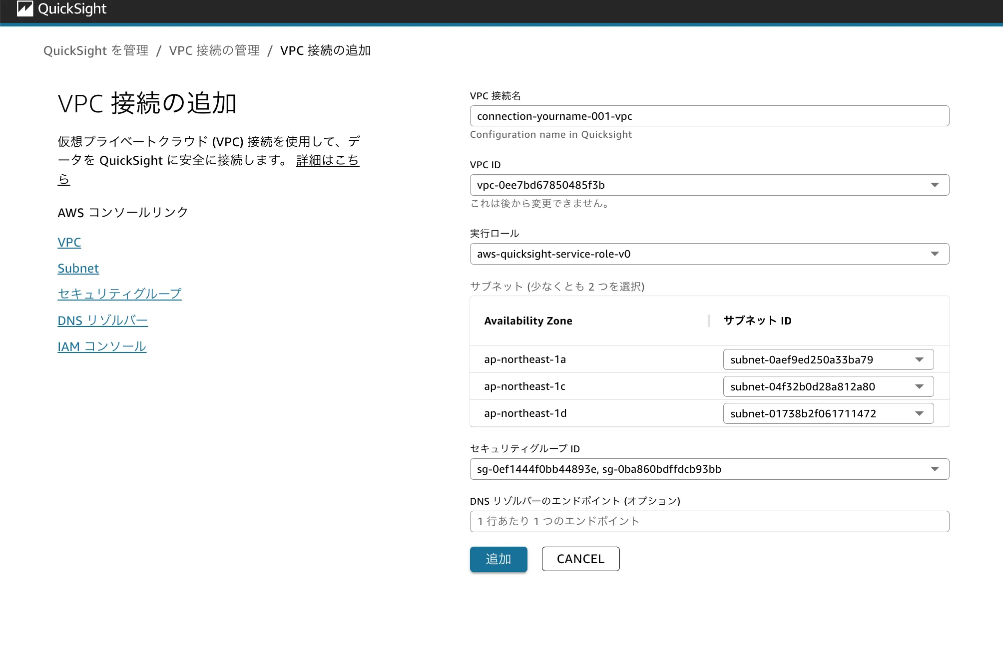 aws-quicksight-service-role-v0 - サブネット:
