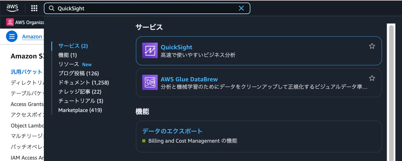QuickSightに移動