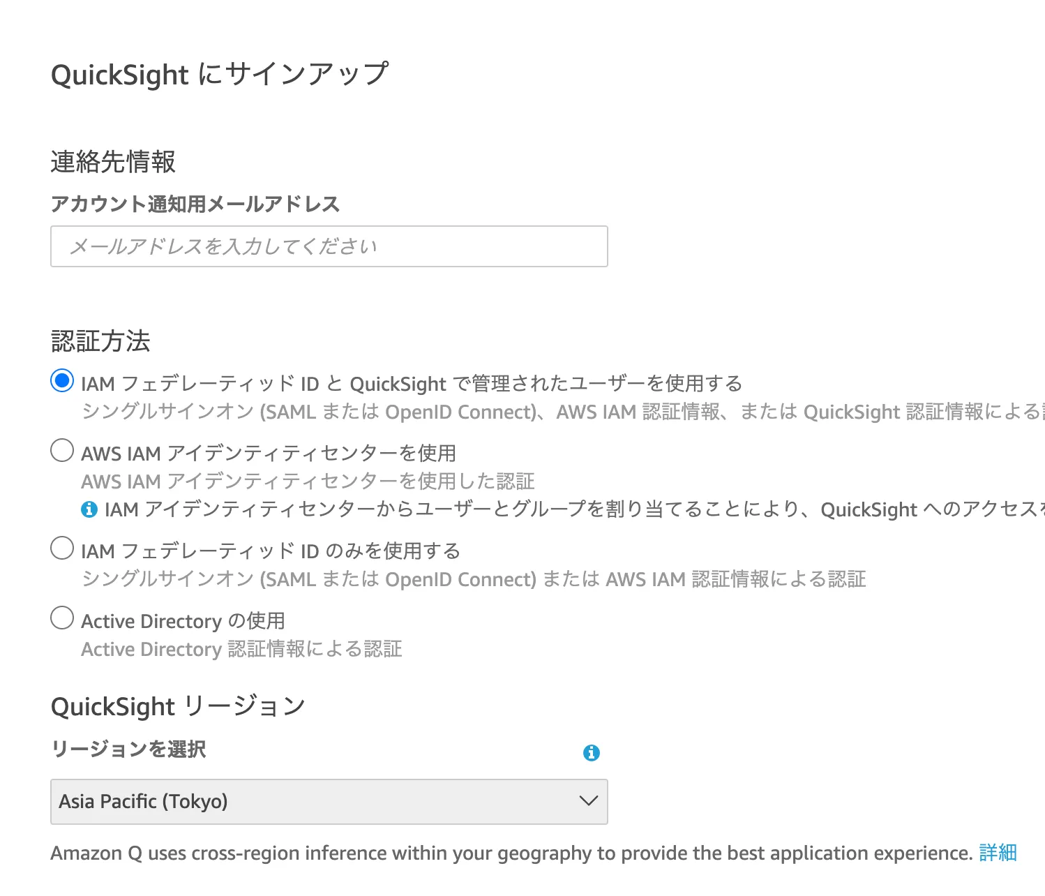 IAM フェデレーティッド ID と QuickSight で管理されたユーザーを使用する - QuickSight リージョン: