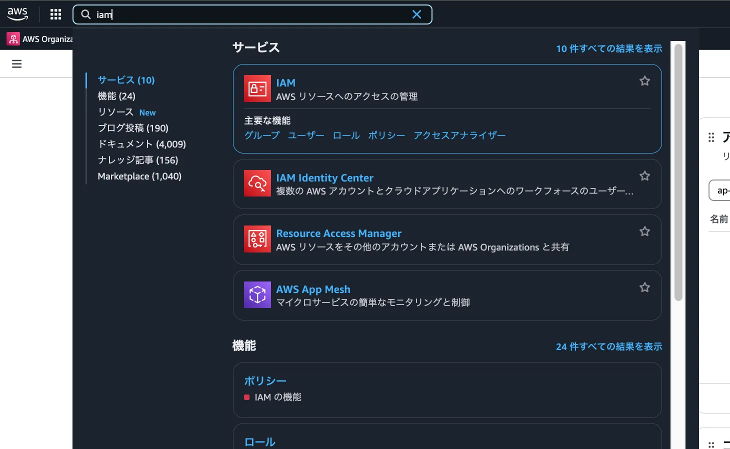 IAMに移動